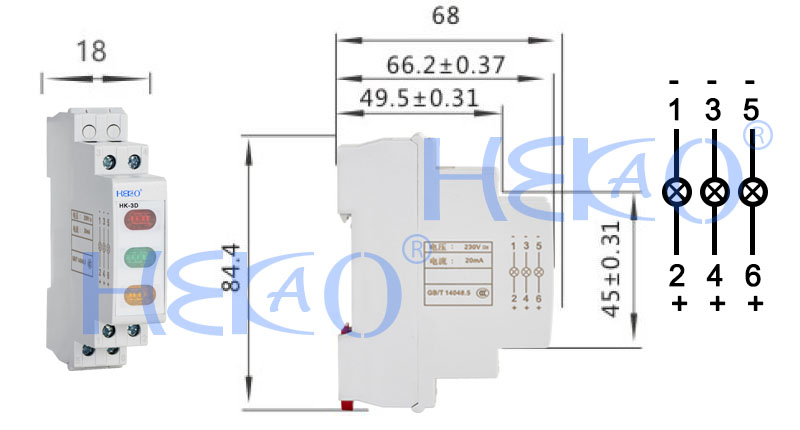HK-3D, 18mm DIN Rail LED Ac/Dc three Signal lamp Indicator Light