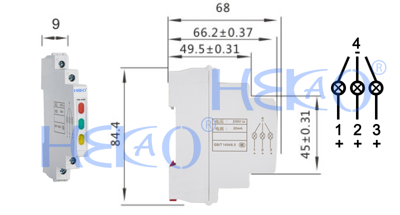 HK-H3D, 9mm DIN Rail LED Ac/Dc three Signal lamp Indicator Light